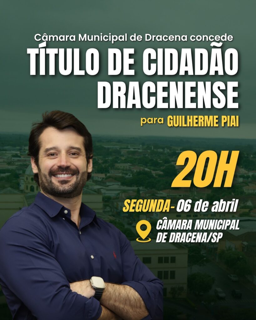 CONVITE ESPECIAL! TITULO DE CIDADÃO DRACENENSE PARA GUILHERME PIAI