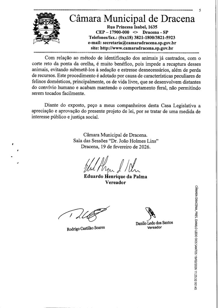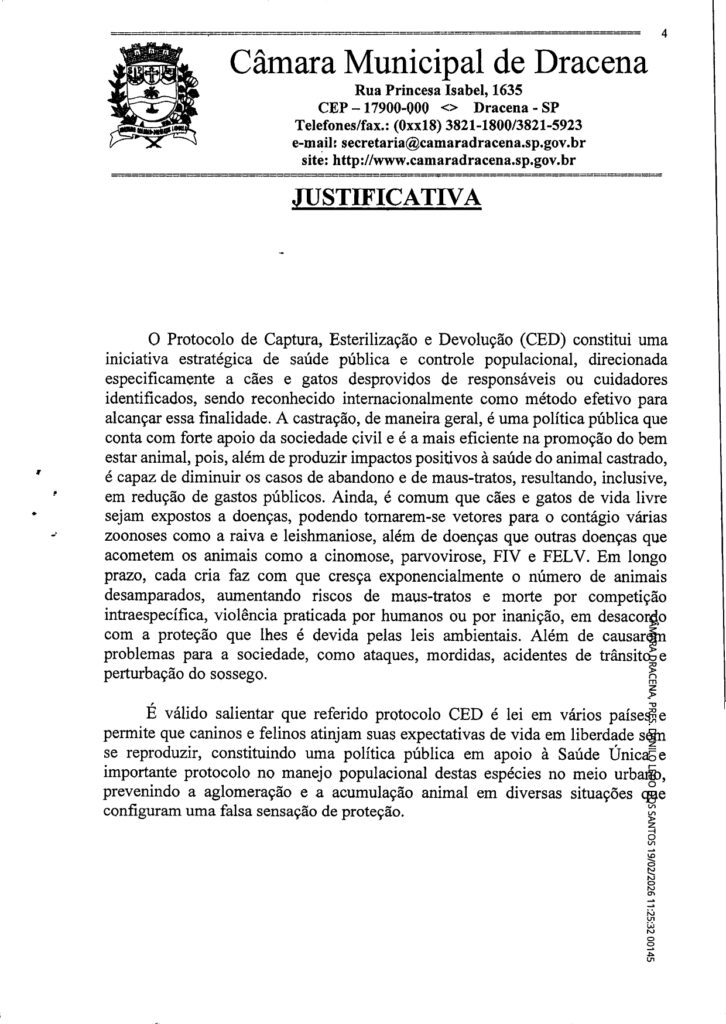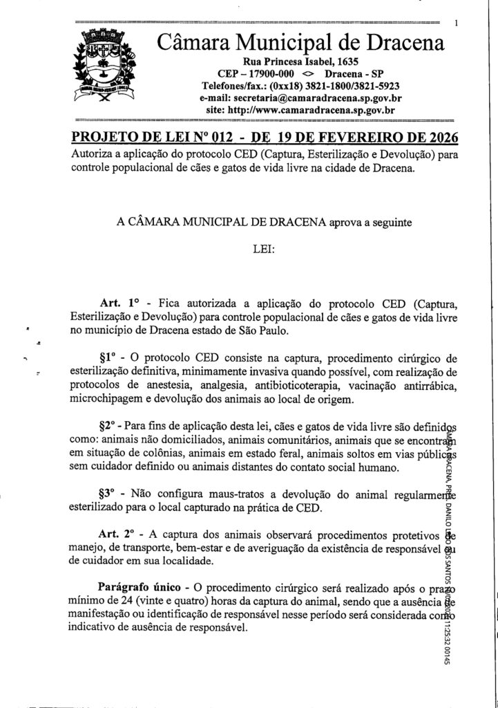 #Dracena #BemEstarAnimal #ProteçãoAnimal #SaúdePública #CâmaraMunicipal #CED