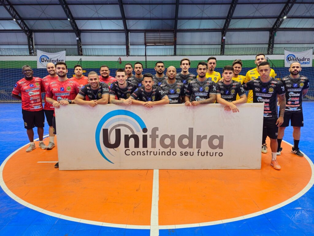 Patrocinadora master do time, a Unifadra reforça seu compromisso com o incentivo ao esporte e com a valorização da educação, unindo a força do futsal à divulgação do ensino e das oportunidades de formação oferecidas pela instituição.
