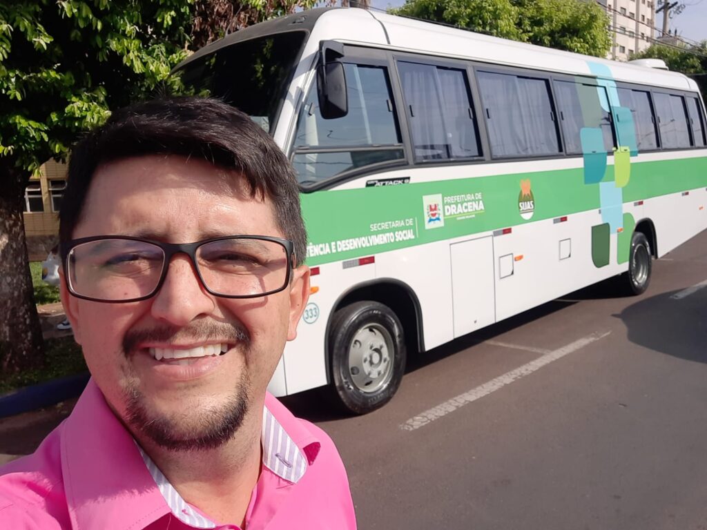 Segunda Ferira (29-09) Osmar Pinatto Assessor do Deputado Estadual Mauro Bragato esteve em Dracena para entrega do Micro-ônibus fruto de emenda parlamentar do Deputado que atenderá os participantes do Centro de Convivência do Idoso Pedro Petrucci.