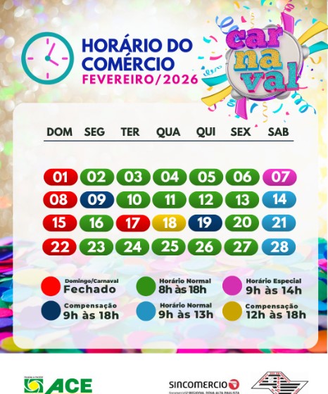 HORÁRIO DO COMÉRCIO , FEVEREIRO DE 2026 EM DRACENA